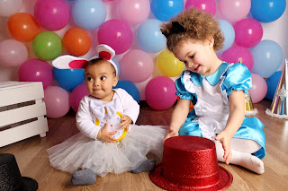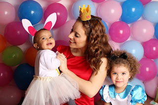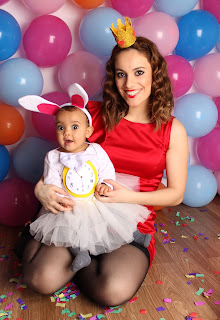 O tema escolhido para o nosso Carnaval foi a Alice no País das Maravilhas! Dei a escolher a Thaís. As que via ela queria então o Carnaval tinha que ter 15 dias para poder usar todas as mascaras !! Afincadamente falava mais em ir mascarada de Elsa do Frozen, mas o aniversario já vai ter esse tema e seria Frozen a mais... Já tinha tido esta ideia da Alice, mas mais próxima da data é que me decidi e achei que tinha tudo a ver. Irmãs, melhores amigas, uma maior outra mais pequena, aquele olho azul da Thaís, o sorriso maroto da Pérola! A Thaís foi a Alice, a Pérola "a coelhinha" e a mamã também entrou no espírito, fui a rainha de copas!! Para minha felicidade, quando falei com a minha irmã que era a Alice, ela tinha a fantasia da minha sobrinha, no qual eu já não me lembrava e assentou na perfeição! Para ela só precisei encontrar a peruca, encontrei mesmo o que queria, as meias brancas e precisei trabalhar a bandolete. A fatiota da Pérola foi toda improvisada por mim. Encontrei as orelhas, o laço, rabinho, tudo num conjunto. O rabinho colei na saia, o laço no bodie e fiz o relógio, as meias foram cinzentas, que já tinha, como as calças do coelho do filme e voilá! Saiu uma coelhinha muito fofaa! Para mim, fiz a coroa, encontrei nos chineses o ceptro e as luvas e pus um vestido vermelho meu, foi só adaptar a maquilhagem á personagem (o coração nos lábios) e lá fui eu de rainha de copas! Na sexta anterior ao Carnaval, foi o desfile da academia da Thaís e nesse dia, só para não ficar de fora, mascarei a Pérola de Minnie. Encontrei numa lojinha as orelhas e pensei :" não vais ficar sem te mascarar hoje", em casa conjuguei o que tinha e foi o resultado que vão ver abaixo nas fotografias! Espero que se deliciem com esta sessão como eu e que sirva de inspirações para o próximo ano é realmente só ter imaginação e por as mãos a obra!